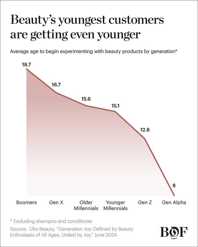 💄 There’s a rumor that Sephora will stop selling sex toys by the end of the year. And I’m wondering if this a brand issue, or simply a demand one. A few years ago, sexual health was all the rage… with brands like Dame and Maude popping off. But now with social conservatism on the rise, and the age of beauty buyers plummeting (leading to the wonderful Sephora kid phenomenon), I think the retailer might be trying to align their stance with their new audiences - and the parents who fund them.
