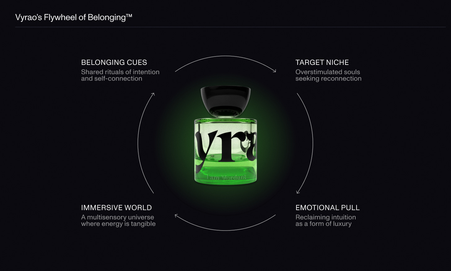 The Flywheel of Belonging™ reveals the mechanics behind Vyrao’s magnetism — four forces that, together, turn a simple product into a world people want to belong to.